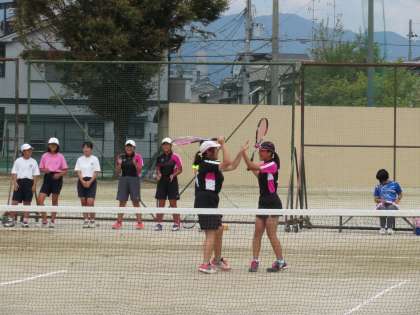 山なりのサーブしか打てていなかった頃と違い、ストレートの見事なサーブを打ち、相手がリターンに失敗する場面もありました。とっても成長した姿を見ることができました。でも、まだまだ伸びしろはたくさんありそうですよ。毎日の練習頑張れ!!!