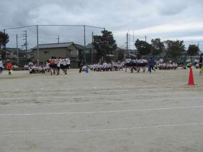 体育大会(その12 3年生学年種目 どんどん変わるよ!みんなで走れ!99人100脚