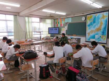 今日は1年生国語と理科(写真は国語)、2年生社会、そして3年生は理科と社会(写真は理科)を実施しています。
