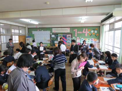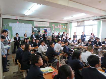 大淀中学校では国語科の授業研究を1年4組の生徒のみんなに協力いただき実施しました。ご協力ありがとうございました。