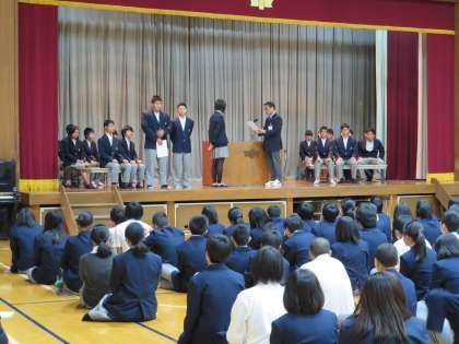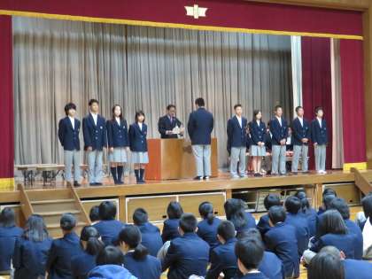 伝達表彰&生徒会本部役員・後期学級役員認証式
