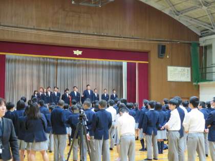 最後の最後は全校生徒で「校歌斉唱」です。「Be proud of OHYODO」・愛校心の象徴としての校歌を、心を込めて歌ってくれました。