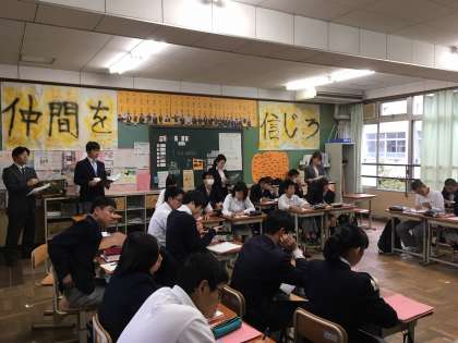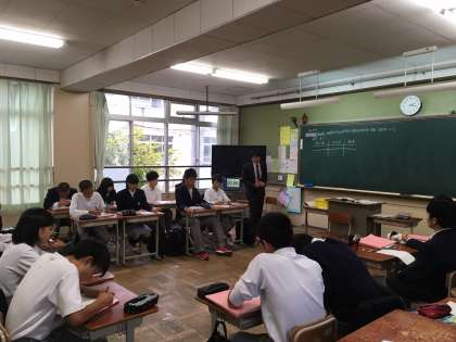 本日6時間目、3年3組で理科の研究授業が行われ、経験年数の若い先生方が来校されました。