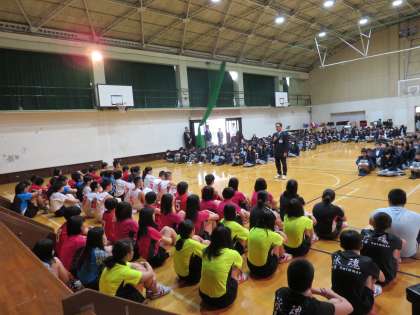 前に立って発表する各キャプテンは、原稿を見ることなく、自分の言葉で全校生徒に発表し、そして、それを聞く全校生徒も、しっかり顔を上げて聴くという、とても素敵な時間と空間を共有することができました。みなさん本当にありがとうございました。