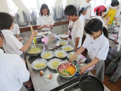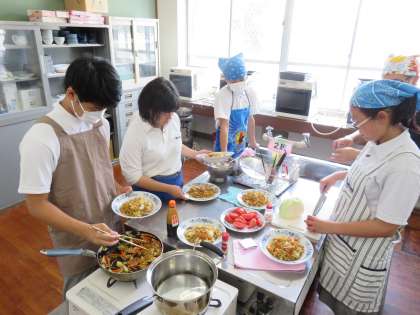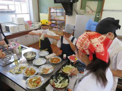 ゆで卵が温泉卵の少し固い版で苦労している班が…。