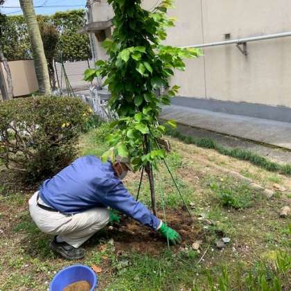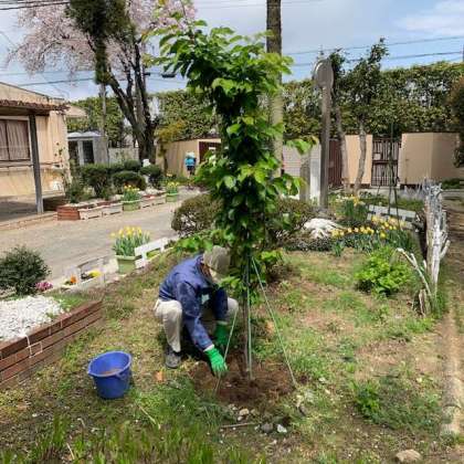 淀河津桜を育てる会の皆様から2年前に河津桜を植樹していただき、大きく成長してきました。今日は朝からそのメンテナンスに来ていただいていました。先日は北校舎のブロック塀をフェンス化工事をしていただきましたが、今後はそこにも河津桜を植樹してくださるというお話をいただいています。ますます楽しみが増えました。