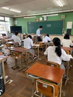 先ほど午前中組の下校が終わり、今、午後組が登校してきました。