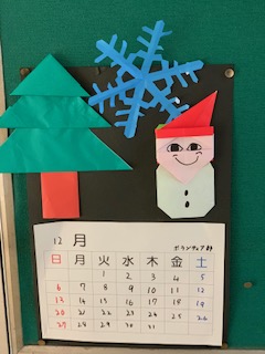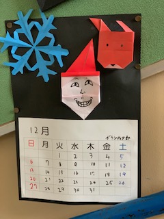 毎月ボランティア部の皆さんが作成してくれているカレンダーですが、廊下に12月分を掲示してくれています。