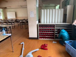 管理用務員さんが会議室の床の拭き掃除やスリッパの整理などをしてくださいました。