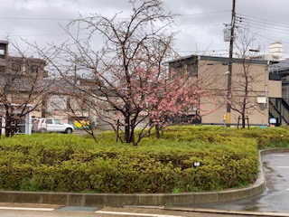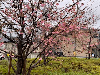 淀駅の河津桜も咲き始めています。きれいですね。