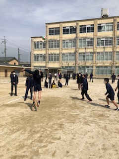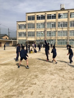晴天のグラウンドでは球技大会(バレーボール大会)を行いました。