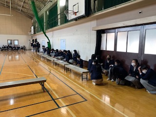全校生徒で亡くなられた方のご冥福を祈り、黙祷を行い、鎮魂の祈りをささげました。