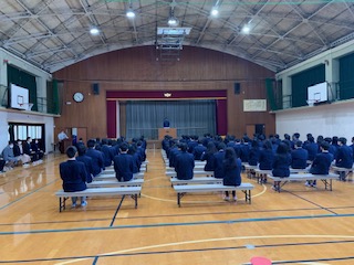 連日、卒業式の練習を行っています。今日は入退場、呼名など全体を通したイメージをみんなで確認しました。