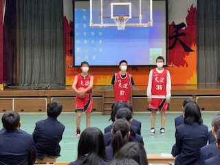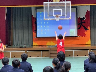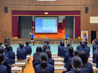 新入生を迎える会(部活紹介 バレー部 男女バスケットボール部)