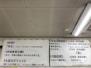 職員室の壁に学校教育目標や学年目標などを掲示しました。