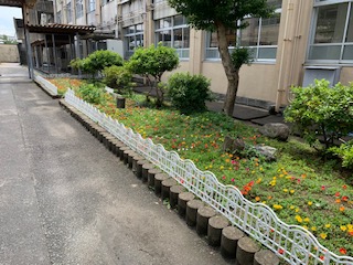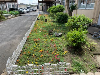 昨日紹介しましたポーチュラカの花壇に柵をつけていただきました。