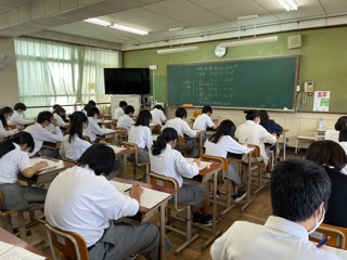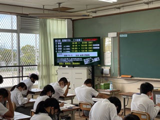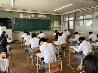 登校中の多くの生徒が片手に教科書を持ってきました。テストの時は体操服登校ではなく、全員が通学服を着用し、元気に来てくれました。