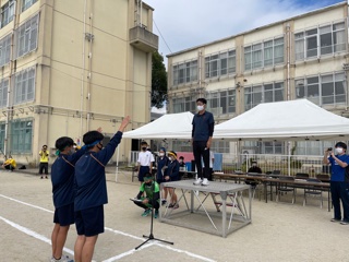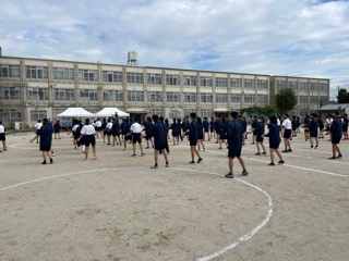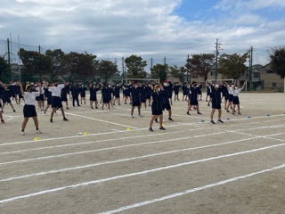 2年生開始式が行なわれました。準備体操はダンスを交えたユニークなものでした。