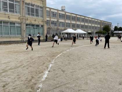 いよいよ体育大会最終種目部活対抗リレーになります。文化系のリレーになります。