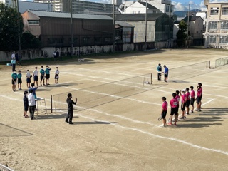 ソフトテニス近畿インドア大会京都市予選が10月23日と24日に開催されました。23日は団体戦が松原中学校で,24日は個人戦が神川中学校で行なわれました。団体戦は健闘しましたが,ミスが響き2敗して予選敗退でした。個人戦は昨日の反省から巻き返し,2回戦を勝ち上がったM/Mペアが見事来週の個人戦残り試合に進出を決めました。おめでとう。
