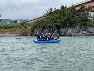 みんな笑顔で天竜川を下ってきました。