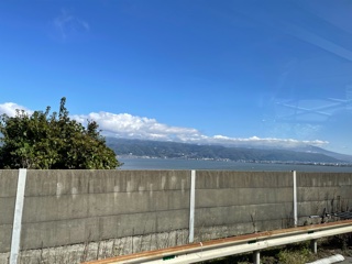 車窓から諏訪湖が見えてきました。