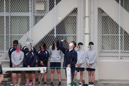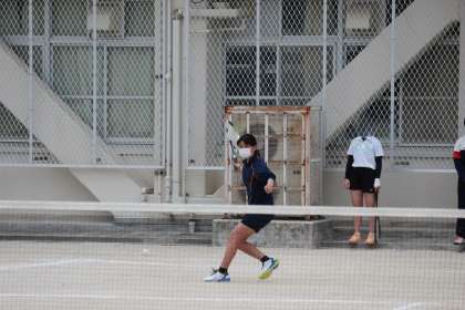 天気予報では、10時あたりから雨予報。そんな中、9時15分から予選リーグがスタートしました。大淀中学校からは、3年生1名、2年生6名が出場しました。全部で4ペアの出場(オープン参加1ペアを含む)です。試合は、3ゲーム先取した方が勝利です。