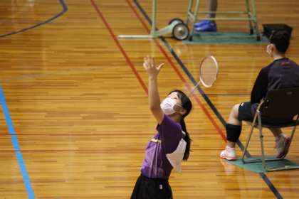 続くシングルス戦。アップの段階から強そうな相手です。第1セットから強いスマッシュに翻弄されます。Fさん(3−4)も必死にシャトルをおいますが、ネット際に落とされたり思うようにゲームコントロールできません。1−9からなんとか7−12まで粘りますが、そのあと連続得点を決められました。