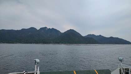 宮島に向けて、乗船しました。宮島までは、15分程度の船旅ですが、風がとても気持ちいいです。