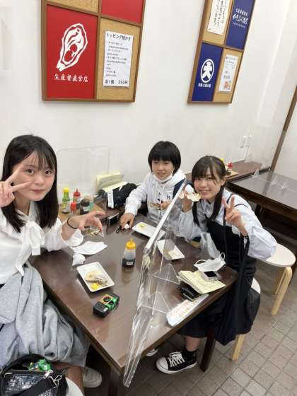 広島と言えば、牡蠣がありました!!牡蠣のお店もたくさんあります。自由行動の間に昼食をとるところも考えています。