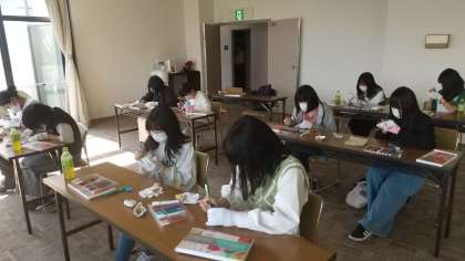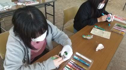 広島のカキの殻の白い部分に、修学旅行の思い出、広島の風景等を描いています。世界にひとつだけの素敵なおみやげ、思い出になります。