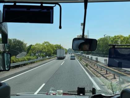 ホテルを出発して、さきほど福山SAでトイレ休憩をとり、現在バスは岡山県倉敷市に向かっています。