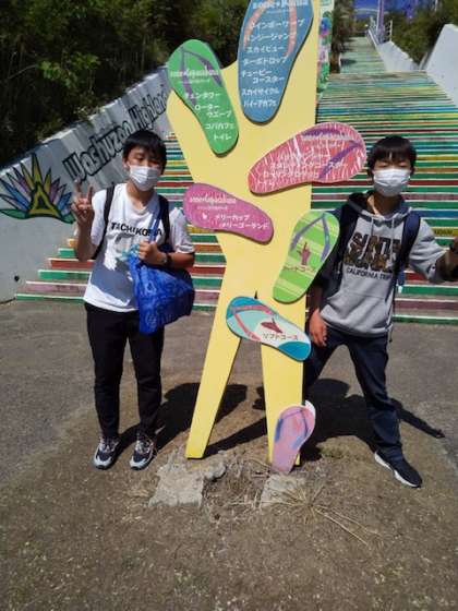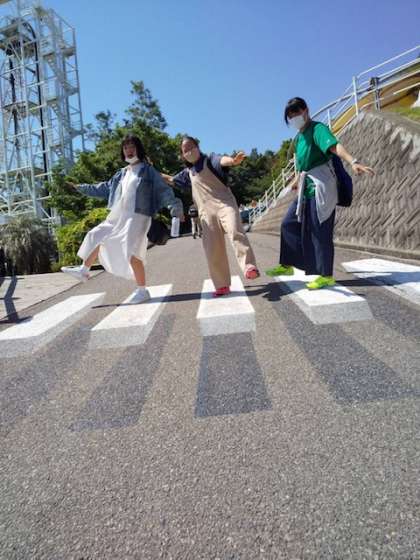 遊園地には様々な仕掛けがあります。トリックアートに挑戦しています。