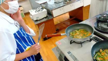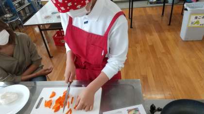 今日は韓国料理のチヂミにチャレンジしました。保護者の方に助けてもらいながら、楽しく、美味しくいただきました。ごま油の香ばしい香りが学校に広がりました。