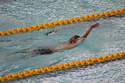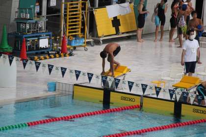 午後からサッカーの取材がありましたので、午前中のレースのみ紹介します。男400m個人メドレーに参加したKくん(3−4)、個人メドレーはバタフライ・背泳ぎ・平泳ぎ・自由形(クロール)の4つの泳法で100mずつ泳ぎます。Kくんは、バラフライをトップで通過するものの、平泳ぎで逆転され、最終10位の結果でした。