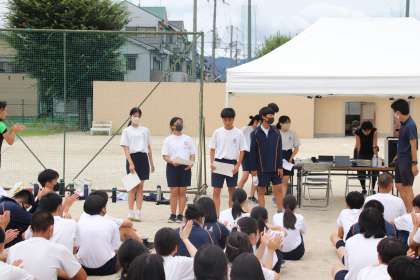 本日,2時間目から3年生の球技大会がありました。天気が心配されましたが,何とか雨も降ることなく,予定通りグラウンドで行いました。どのクラスも,一生懸命に取り組みました。ミスがあっても,みんなで声を掛け合いながら,必死にプレーする姿はとてもかっこよかったです。また,試合をしている仲間には,クラス一丸となって,応援をしている姿を見ることができ,学級の絆の深さを感じることができました。