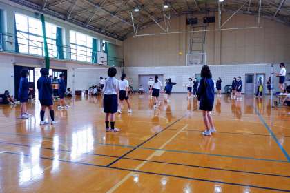 今日は2年生の球技大会が2時間にわたって行われました。天候が雨の予報もあり,体育館での実施となりました。どのクラスも練習の成果を最大に発揮し,ナイスプレーを連発させて,大会は大いに盛り上がりました。接戦の時には,クラスで男女問わず一生懸命に応援をする姿が見られ,クラスの団結力の高まりを感じました。開閉会式では体育委員がよく頑張りました。各チームのキャプテンをはじめ,みんなが役割を責任もって果たせたのは立派でした。