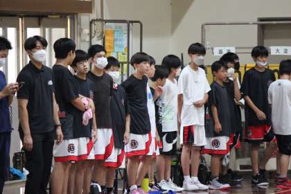 編集が遅くなり申し訳ありません。7月18日松原中学校で行われた男子バスケ部の1回戦の模様です。男子バスケ部は、春季大会であと1勝というところでシード権を逃し、夏季大会は1回戦からの出場となりました。相手の嘉楽中学校はシード校で、初戦から厳しい試合が予想されていました。