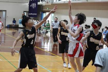 前半を35−54で終え、後半戦へとすすみます。審判も絶賛していたほど、Oくん(3−3)は両リームの中でもひときわプレーの精度が高く、またIくん(3−5)の3Pシュートなどで応戦しますが、なかなか差が縮まりません。