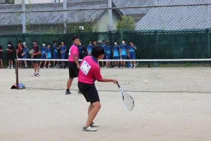 女子ソフトテニス取材の影響で、第1ペアの最後から取材を始めました。第1ペアは、大淀中の中で、最も実力の高いペアです。結果は順調に勝利しましたが、試合の途中にWくん(3−5)の足がつるトラブルがありました。
