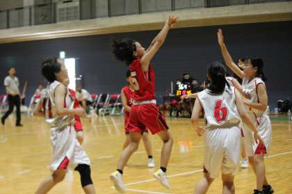 第4Pは、終始、大淀中のペースでした。途中、Yさん(3−5)の足がつってしまいましたがラスト2分で復帰。洛北中との特別試合は、48−37で大淀中が勝ちました。