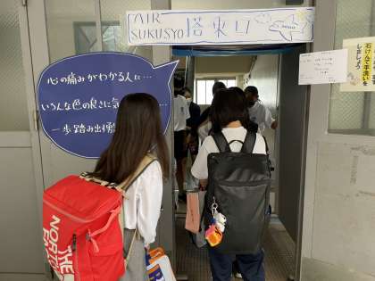 校則を守る取り組み「スクールルール守ろうミッション(通称スクショ)」が今日まで行われています。生徒会本部の皆さんが、朝の正門で「あいさつ運動」を行っています。1年生も独自の取り組みをしています。名付けて“AIR SUKUSHO”です。自分たちの校舎に入るときに飛行機に搭乗するときのように、お互いに持ち物や服装などをチェックするという取り組みです。評議委員、生活委員、保健安全委員が中心となって搭乗前の検査をするといった感じです。仲間を巻き込んで、みんなで取り組むというこの取り組みが目指していることを実践しています。