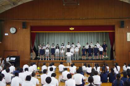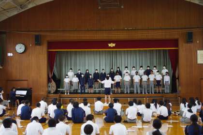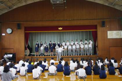入退場の後、休憩なしでそのままリハーサルに突入です。緊張感のなる中にも和やかさもあるいい雰囲気でスタートしました。3年生は、他の学年より人数は少ないのですが舞台上に上がると人数の少なさを全く感じません。そして、それぞれのクラスの合唱が始まるとみんなの真剣な表情が観客をひきつける感じがしました。今日が本番ではありません。まだ1週間あります。まだこれからもっと仕上がってくると思うと本当に楽しみです。3年生の皆さん、中学校生活最後の合唱コンクールを思いっきり楽しんでくださいね!