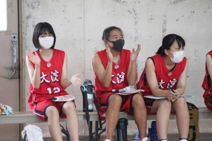 第1試合を27−28で惜敗し、第2試合を47−17で快勝した女子バスケットボール部。第3戦は、開睛小中学校との対戦が西京極中学校で行われました。前の試合が長引いたこともあり、30分遅れての試合開始となりました。
