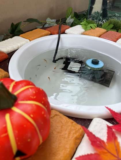 1年生のフロアにメダカがやってきました。登校した生徒は,池にメダカがいるのにテンションが上がって大喜びでした。オレンジ色が楊貴妃,シルバーがみゆきという種類のようです。メダカに詳しい1年4組Mくんが笑顔で教えてくれました。次は,隣の水槽に熱帯魚がやってくる予定です。待ち遠しいですね。どんな熱帯魚になるかは,お楽しみです。