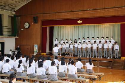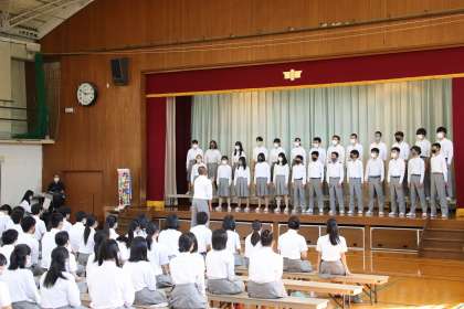本番です。4組から始まり1・5組,1・3組,2組と続いていきました。どの学級も,これまでの練習の成果を遺憾なく発揮してくれました。審査をしてもらった先生方が頭を悩ますほどどの学級の合唱も素晴らしかったです。3年生の絆がさらに深まる取組になったと思います。
