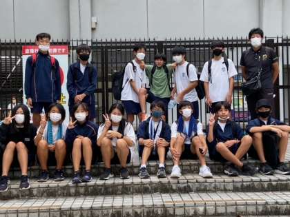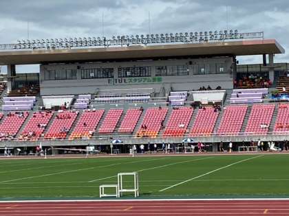 17日(土)に陸上部の新人大会が行われました。大会には、1年生4名、2年生10名の14名が参加しました。台風の影響で、フラッグが大きく揺れるなど、今にも雨が降りそうな曇り空の中で大会が行われました。