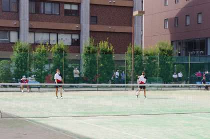 Uさん(2−4)の「声だけでも勝とう!」と始まった強豪校との試合でしたが、相手校の強くて早いストロークに、Sさん(2−2)が「ボールが見えない」とこぼれるほどレベルの差を痛感した試合となり完敗でした。