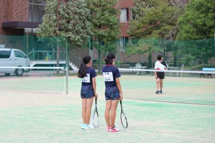 今大会初出場のTさん(1−4)とFさん(1−4)。初勝利を目指して頑張りたいところです。1試合目のあと、応援に来ていた保護者からもプレーについてアドバイスが行われます。試合は、0−3で負けましたが、プレーが徐々に向上しているように見えました。