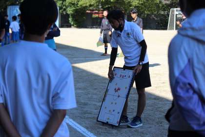 大淀中学校は、今まで洛水中学との合同チームで出場していましたが、それでも11名メンバーがそろわない状況になり、この大会から洛水中学と伏見中学を合わせた3校の合同チームで出場します。